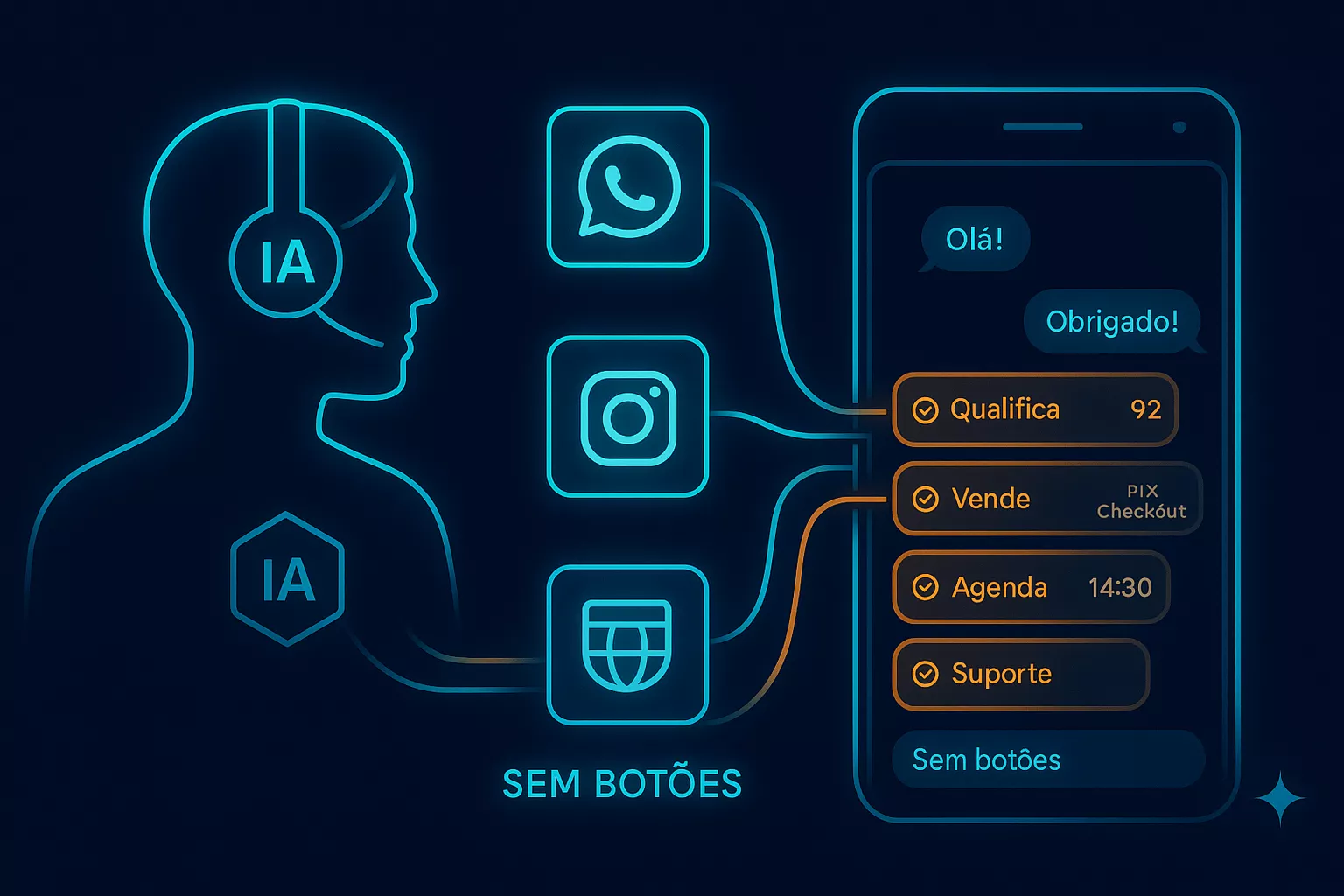 Seu Funcionário de IA será integrado ao WhatsApp, Instagram e site da sua empresa. A partir de então atenderá sozinho seus clientes, qualificando-os, vendendo, realizando agendamentos e dando suporte. Sem botões! É comum os clientes não saberem que se trata de uma IA.