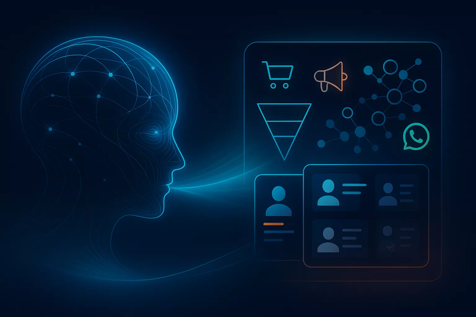 Na prática, implementamos “Funcionários de IA” que resolvem o que rouba tempo e margem: triagem de leads, atendimento 24/7 sem perder o tom humano, agendamentos que reduzem no-show, follow-up que não falha, CRM vivo, personalização de ofertas, relacionamento constante e relatórios claros que mostram onde agir. Fazemos isso com linguagem simples, adaptação ao seu nicho e human-in-the-loop: gente decide o que importa; a IA acelera o resto.